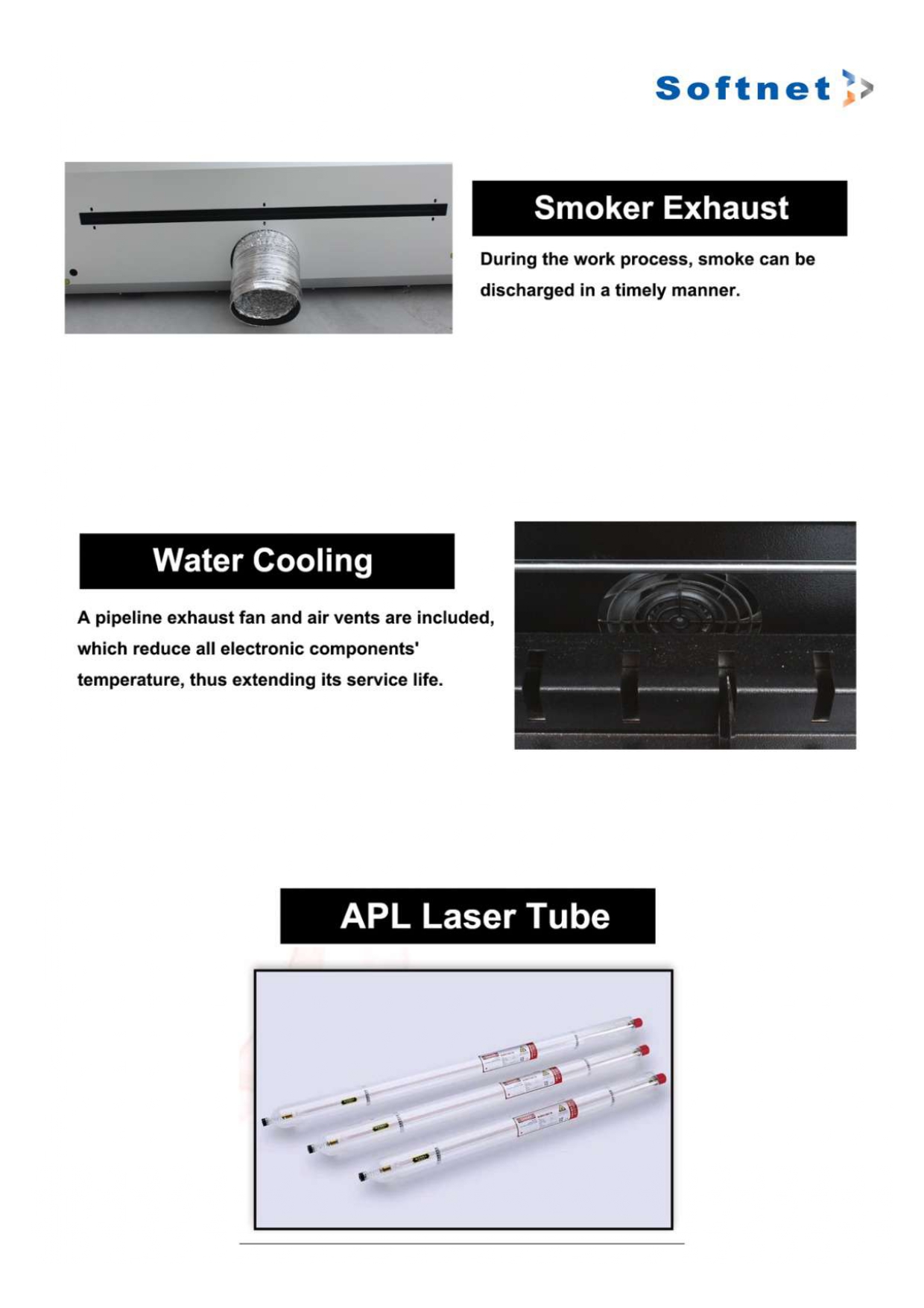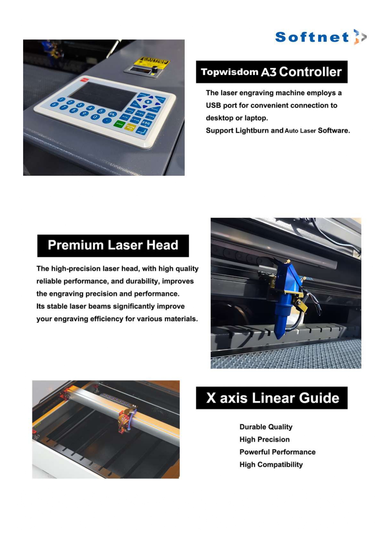 Softnet offer laser machines for entry level model and Heavy-duty range laser engraving and cutting machines with a power range from 50W 60W, 80W, 100W, 120W, 130W and 150W, capable of cutting and Engraving Wood, Bamboo, Acrylic, Fabric, Glass, Ceramic, Delrin, Cloth, Leather, Marble, Matte Board, Melamine, Paper, Mylar, Press, Rubber, Fiberglass, Anodized Aluminum, Tile, Plastic, Cork, Cylian, and more non-metallic materials. Cut: Wood, bamboo, acrylic, cloth, delrin, cloth, leather, matte board, melamine, paper, mylar, press, rubber, wood veneer, plastic, cork, corian and more non-metallic materials.