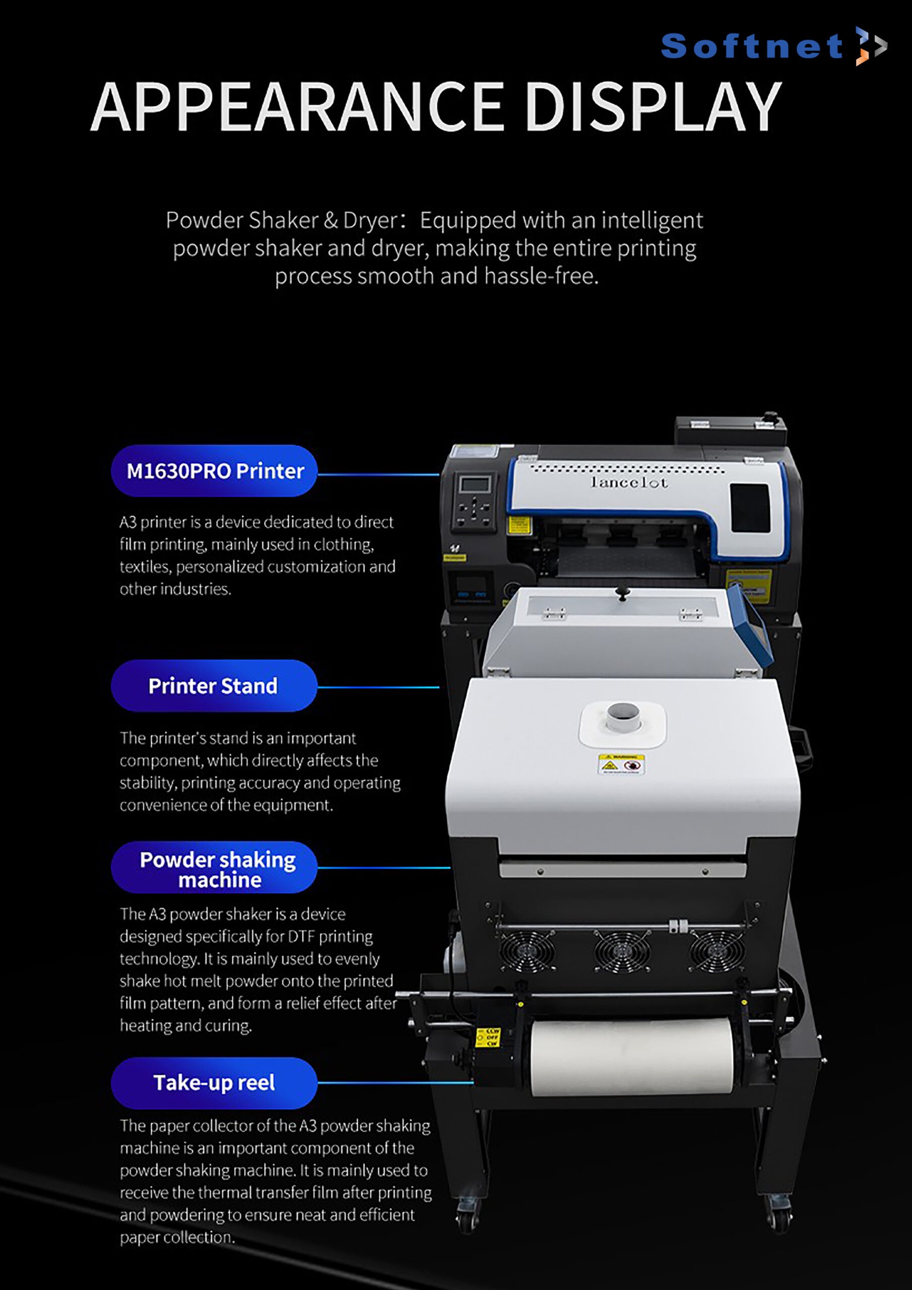 Lancelot M1630pro A3 size roller DTF printer is a reliable and affordable way to start your t-shirt printing business.